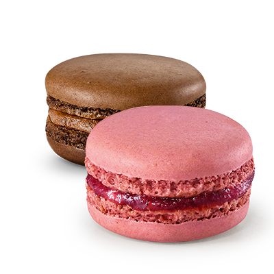 Laissez-vous tenter par notre duo de macarons. Deux petits gâteaux ronds, à la fois croquant et moelleux renfermant un cœur fondant. Le tout en format duo, pour découvrir notre saveur chocolat et notre saveur framboise.